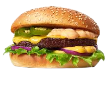 100% Rindflisch, salat, rote zwiebeln, tomaten ketchup, chilli burgersauce, Jalapenos, Käse, Gurken